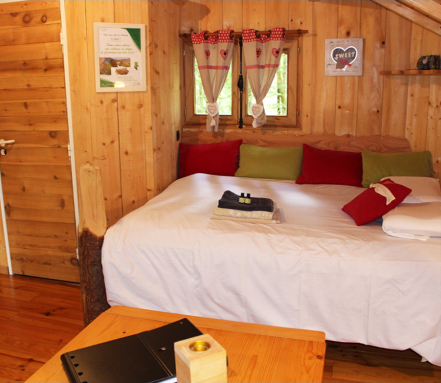 Cette cabane est donc idéale pour les couples, elle vous permettra d’être en au calme tout au long de votre séjour et d’être au plus proche de la nature.