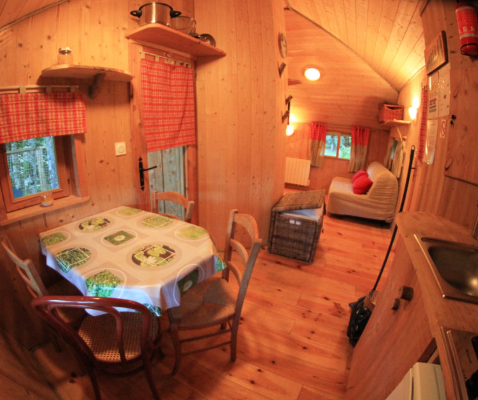 Cette cabane est donc idéale pour les couples avec deux enfants, elle vous permettra d’être en autonomie tout au long de votre séjour et d’être au plus proche de la nature.
