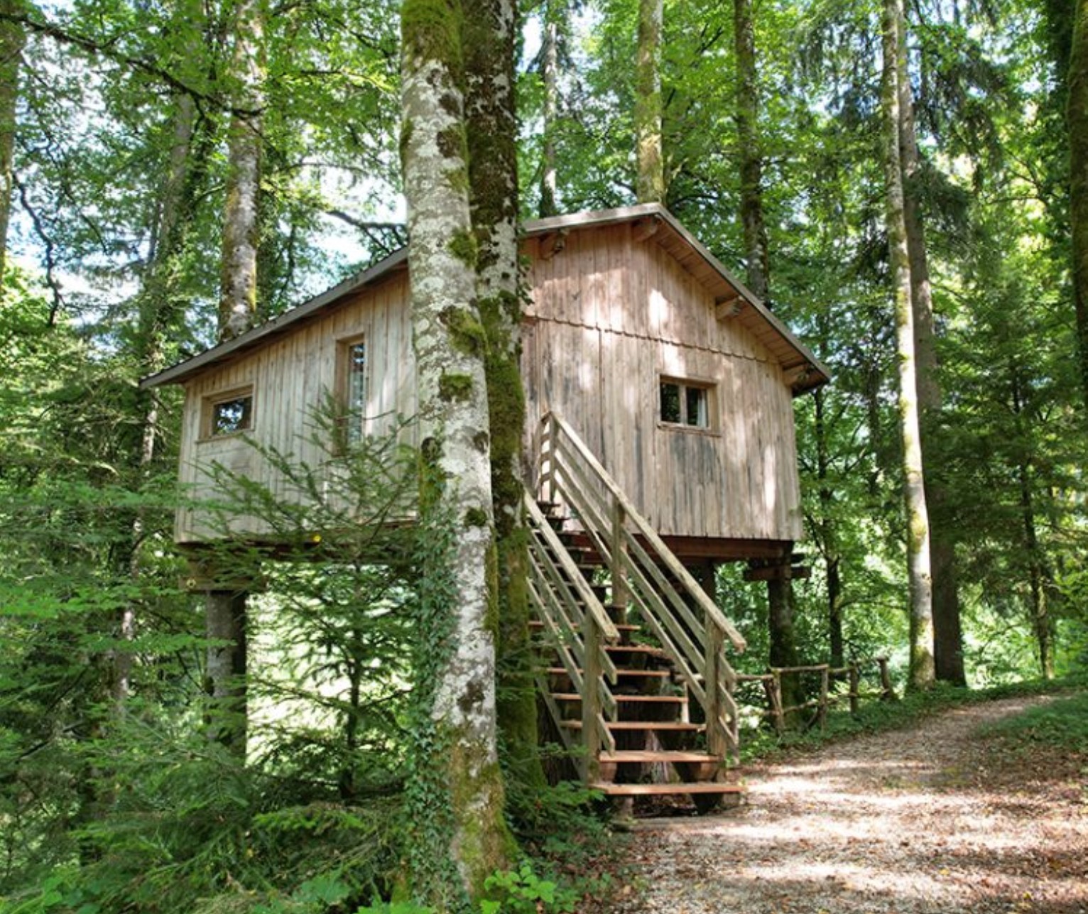 La cabane «la Prêle» peut accueillir jusqu’à 2 personnes (possibilité de 2 personnes supplémentaires avec un clic-clac double), la cabane se compose d’un coin cuisine avec tout le nécessaire, d’un lit double, d’un clic-clac deux personnes, d’une salle de bain et de WC. Vous pouvez aussi profiter d’une terrasse avec vue sur la forêt du domaine de Syam.