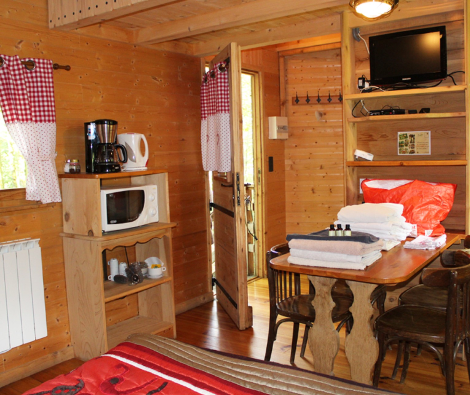 Cette cabane est donc idéale pour les couples avec deux enfants, elle vous permettra d’être en autonomie tout au long de votre séjour et d’être au plus proche de la nature.